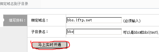 5.綁定子目錄前,請(qǐng)先在FTP空間WEB目錄內(nèi)新建一個(gè)需要綁定域名的目錄例如BBS,方可進(jìn)行子目錄綁定